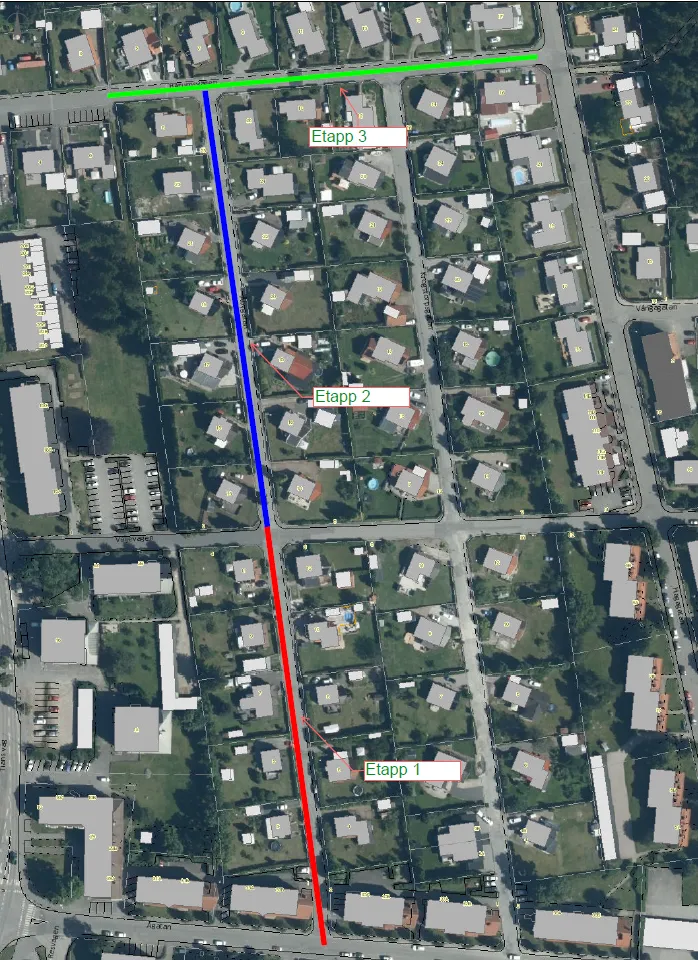 Nedan ser ni sträcka där arbetet kommer utföras med start och slutmål.